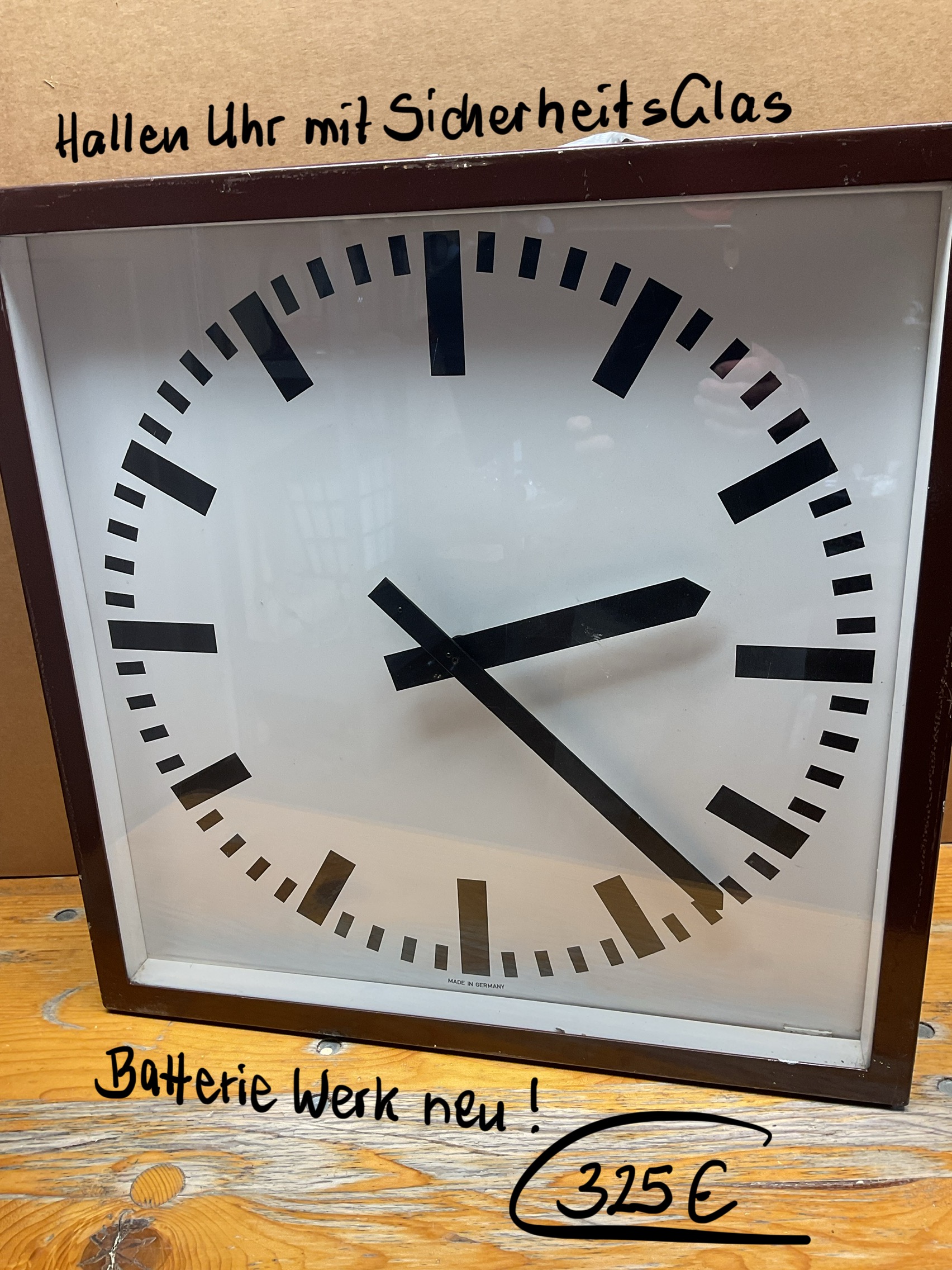 Nebenuhr, mit neuem Batterie Uhrwerk, mit Metallgehäuse und Sicherheitsglas.