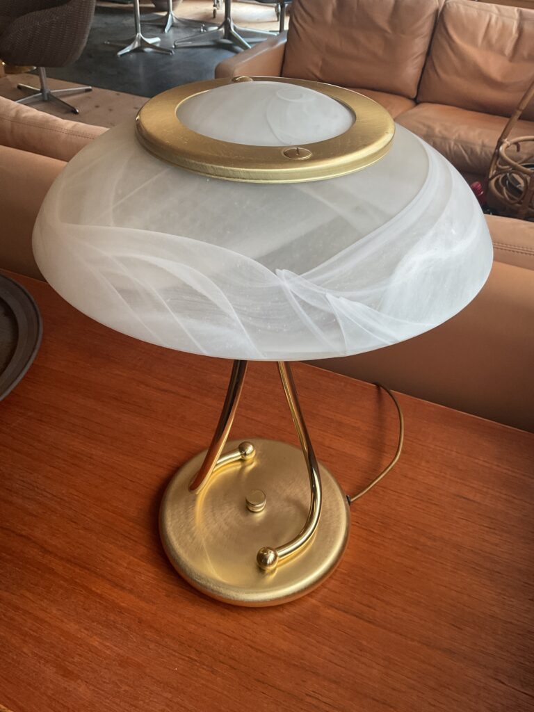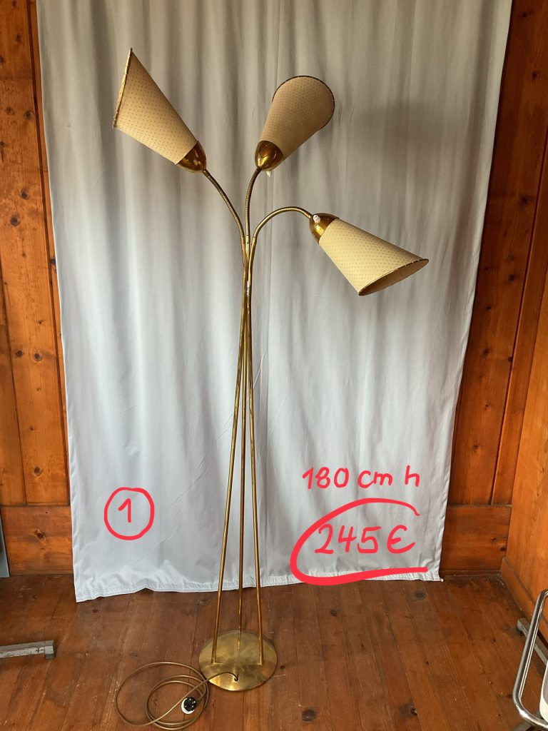 Original 50er Jahre, Fuß Messing mit Weissgoldenen Keramik Elementen, Stoffschi Preis 225 €