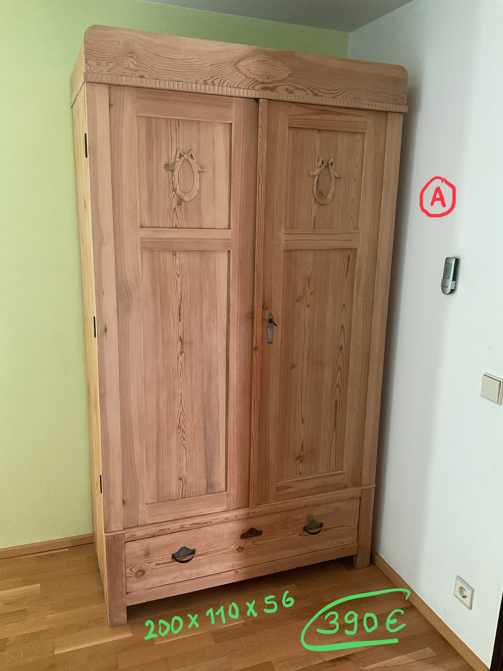 Jugendstil Weichholz Schrank, sehr sauber restauriert